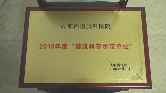 12月20日,荣获由四川省预防医学会、成都商报传媒集团及成都商报四川名医联合颁发的“2019健康科普示范单位”
