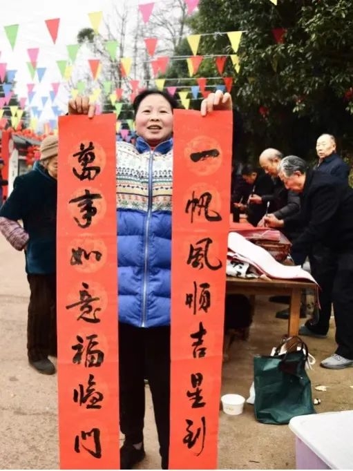 书法老师们也带着笔墨纸砚在现场挥墨写春意,一起一落间,一句句满含祝福的佳句跃然纸上。